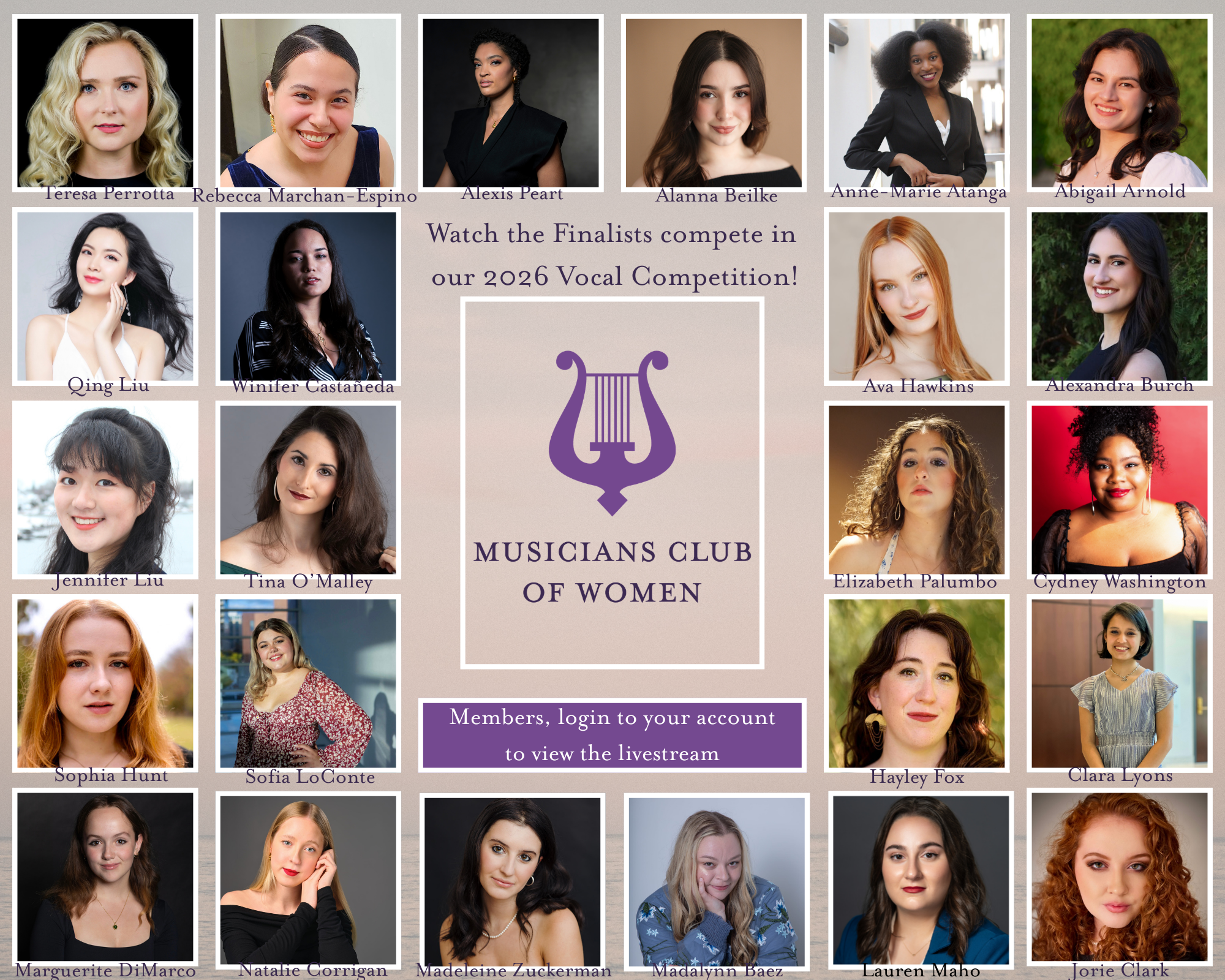 Members are invited to watch the Final Rounds of our annual Instrumental and Vocal Competitions, featuring exceptional performances by some of today’s most promising emerging artists. These final rounds showcase a wide range of repertoire and artistry as finalists compete for top honors before a panel of highly qualified professional judges. Each performer is allotted a 15-minute time slot to present their program.